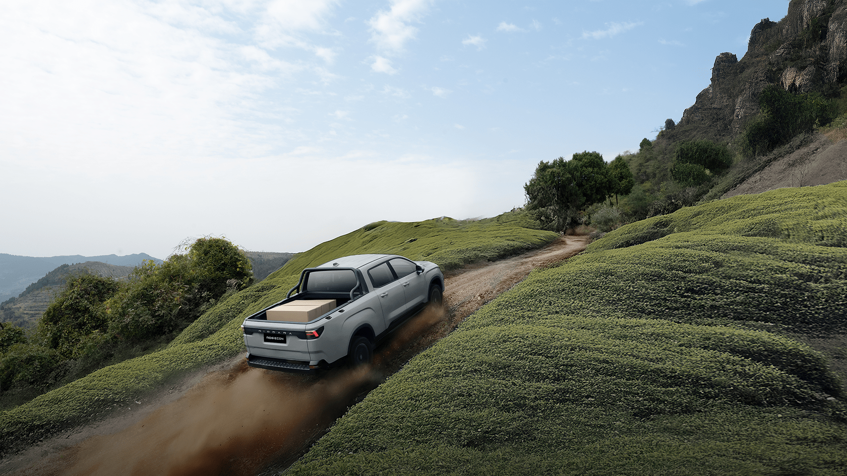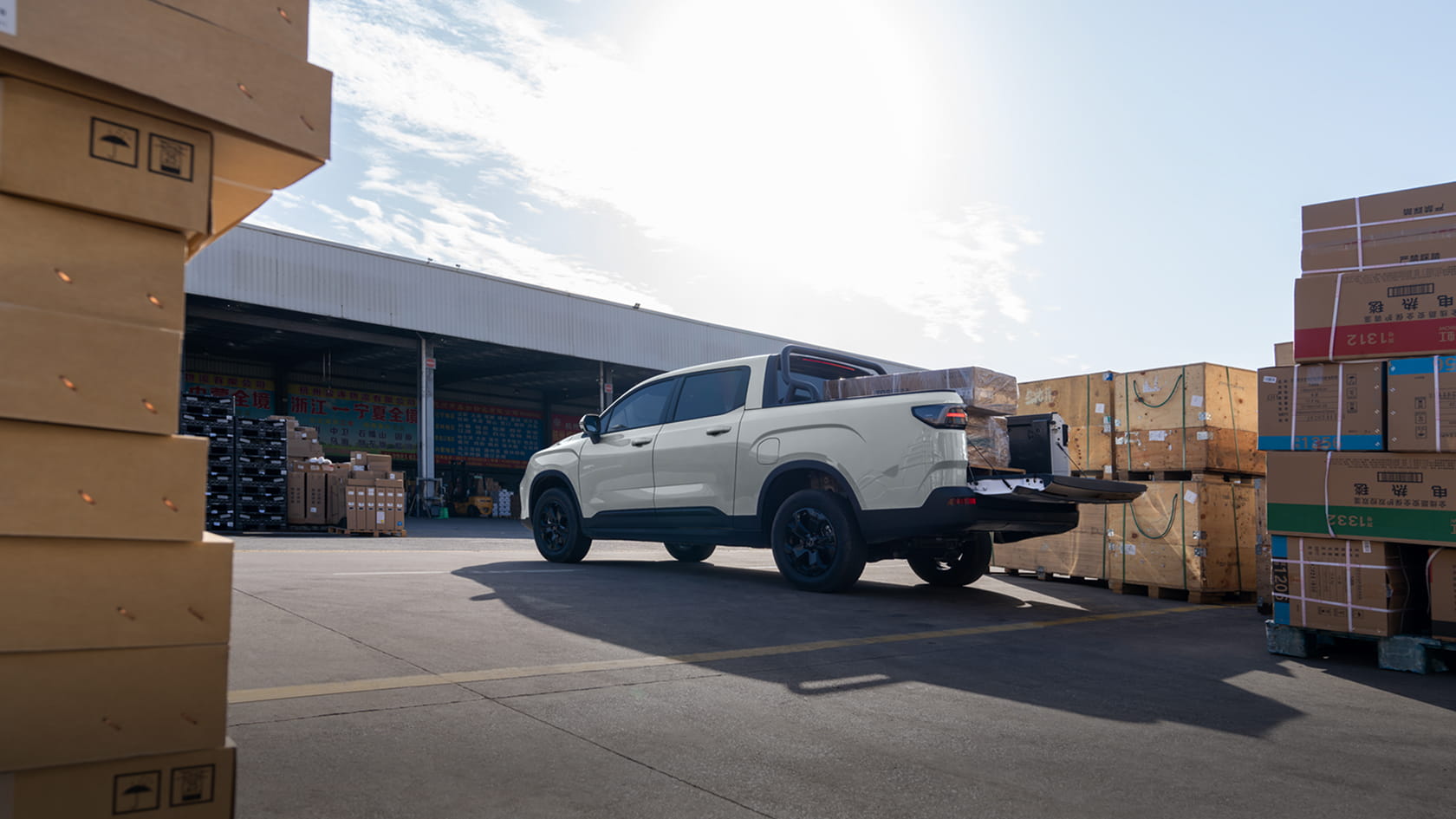 21kW power supply for onsite operations: Up to 15kW from fast charging port and 6kW from truck-bed discharge panel.